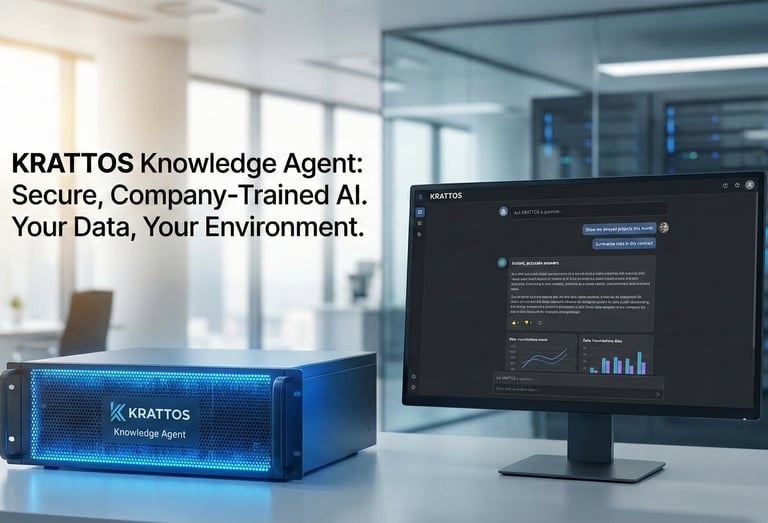 Scalable growth, Reduced costs, Improved margins & Better efficiency with KRATTOS AI ERP, Knowledge Agent and GPT.